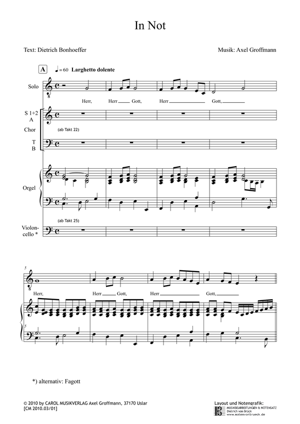 | Untertitel: | für Solostimme, gem Chor, Violoncello und Orgel Partitur |
