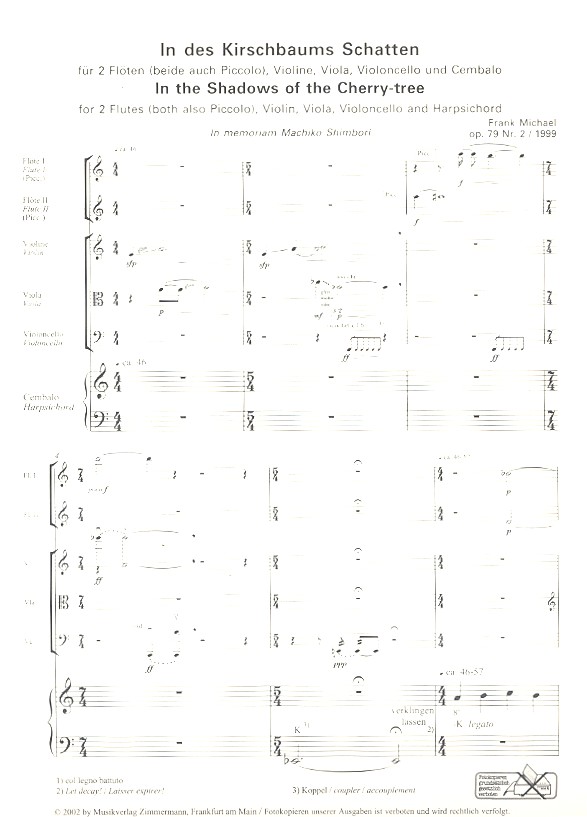 | Untertitel: | für 2 Flöten, Streichquartett und Cembalo Partitur und Stimmen |