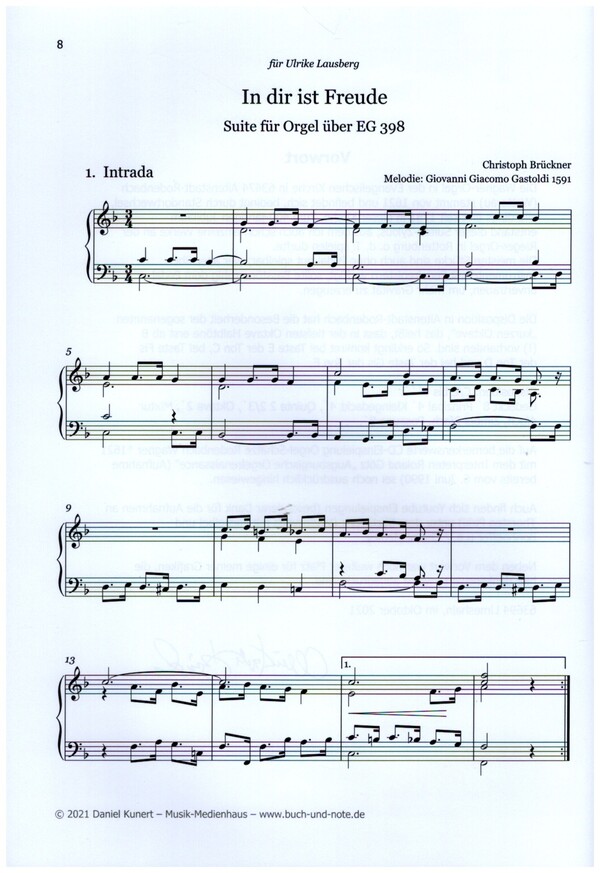 Suite Take Twelve Mit dieser Suite in zwölf Sätzen für Orgel über EG 398 legt Christoph Brückner erneut schwungvolle und mitreissende Musik vor, die Gottesdienste und Konzerte klangstark bereichern kann. Inhalt: ntrada Pasticcio Intermezzo Minore Zwiefacher Siciliano Mozart meets Weber Take Eight Polka Humoresque Huapango meets Reggae Perpetuum mobile