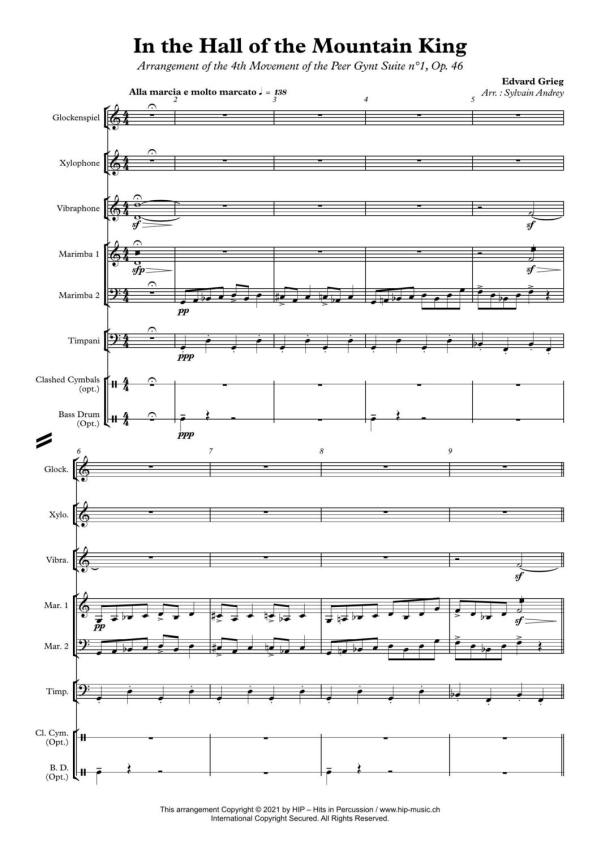 Andrey, Sylvain, arr. Arrangement of the 4th Movement of the Peer Gynt Suite no.1, op.46 In der Halle des Bergkönigs