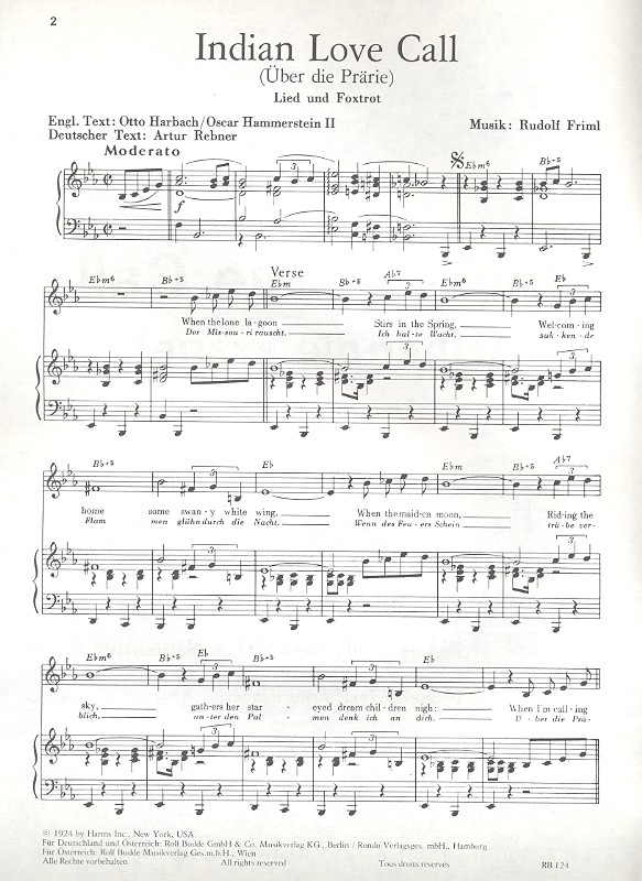 HARBACH, OTTO, TEXT HAMMERSTEIN, OSCAR, TEXT REBNER, ARTUR, TEXT Über die Prärie
