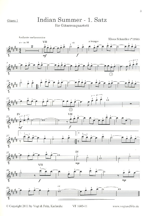 Indian Summer für 4 Gitarren, Bass