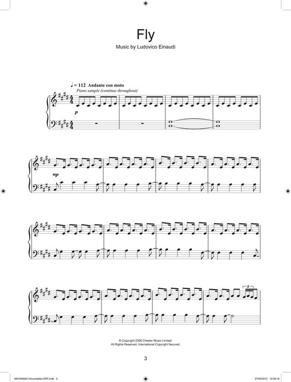 10 pieces from the soundtrack Fly (Einaudi) Writing Poems (Einaudi) The Ghetto (G. Benson) You're goin miss your Candyman (Terry Callier) L'Origine Nascosta (Einaudi) Feeling good (Nina Simone) Cache-cache (Einaudi) Concerto no.8 op.3 movement 3 (Vivaldi) Una Mattina (Einaudi) Red Light (Vib Gyor)