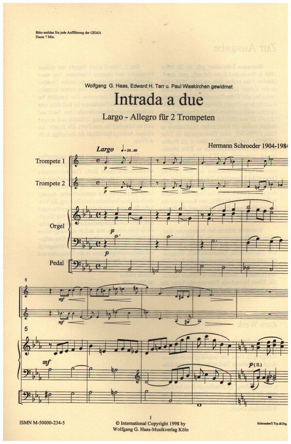 Produktinformationen "Intrada a due Largo und Allegro"