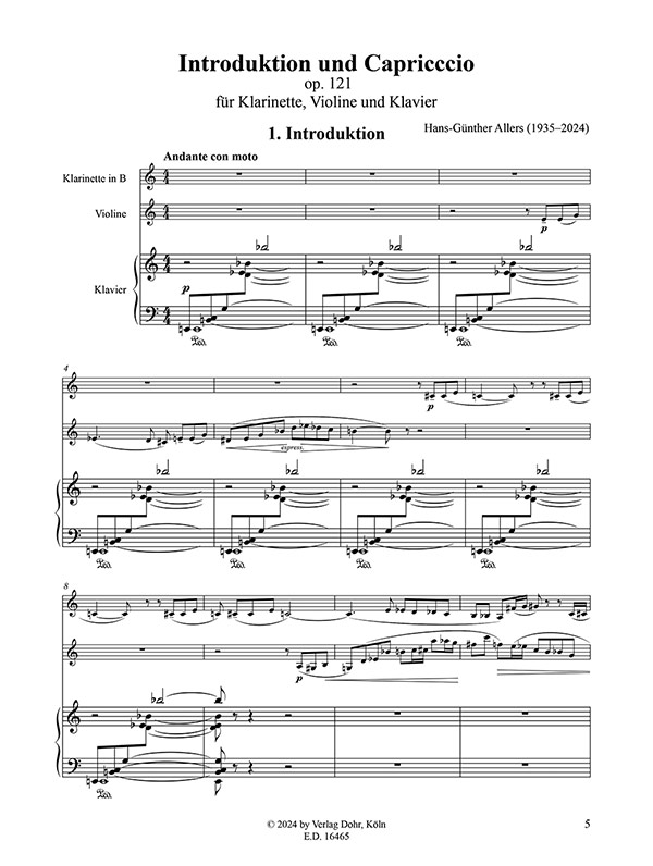 | Untertitel: | für Klarinette, Violine und Klavier Klavierpartitur und Stimmen |