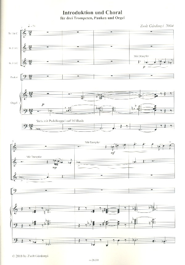 | Untertitel: | für 3 Trompeten, Pauken und Orgel Partitur und Spielpartituren |