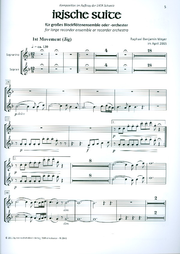 | Untertitel: | für Blockflöten-Ensemble Spielpartitur Sopranino/Sopran |