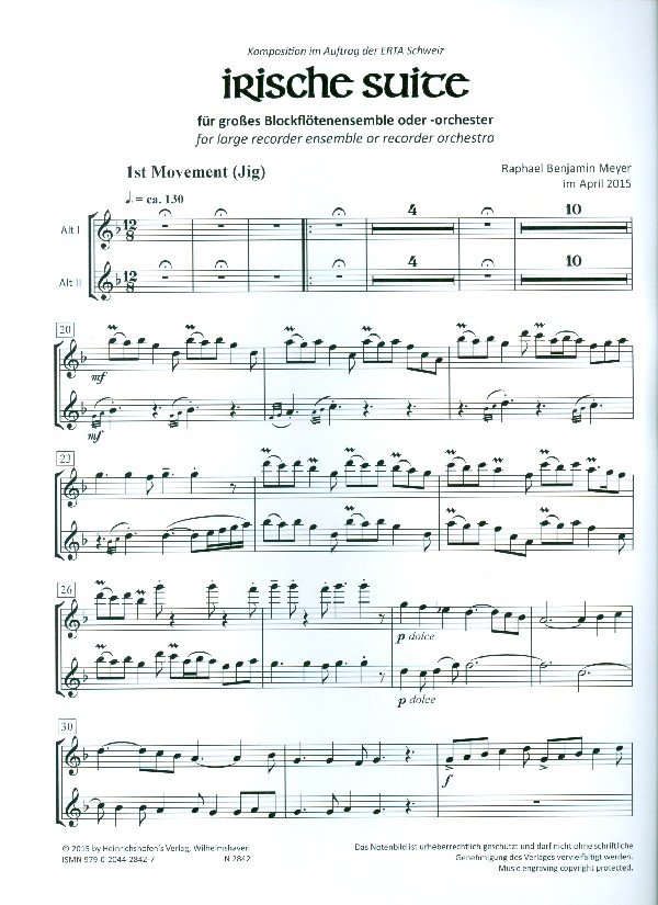 | Untertitel: | für Blockflöten-Ensemble SpielpartiturAlt 1/Alt 2 |