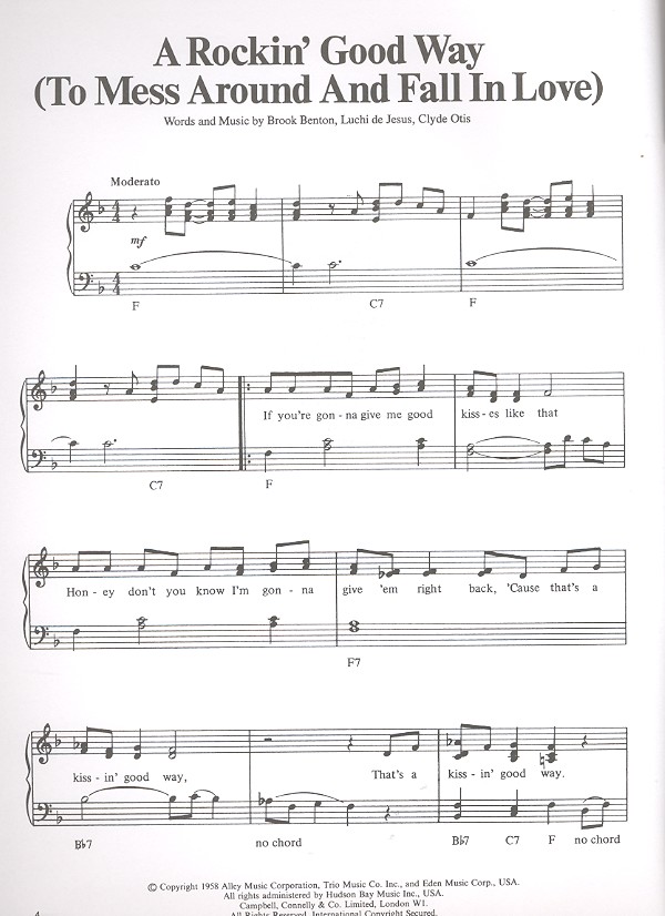 A rockin' good way Be-bop-a-lula Blue suede shues Bo weevil song Chantilly lace C'mon everybody Halleluja! love her so Holy mackerel Jailhouse rock Long tall sally Oh boy! Peggy Sue Rave on See you later alligator Somethin' else Summertime blues That'll be the day Twenty flight rock