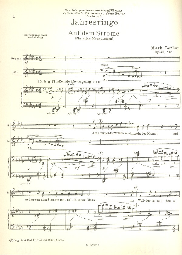 Morgenstern-Duette Gesänge zu zweien Auf dem Strom Der Wildbach Herbst Nächtliche Schlittenfahrt