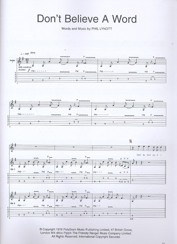 Don't believe a word Waiting for an alibi Still in love with you The boys are back in town Whiskey in the jar Jailbreak Rosalie Emerald Thin lizzy