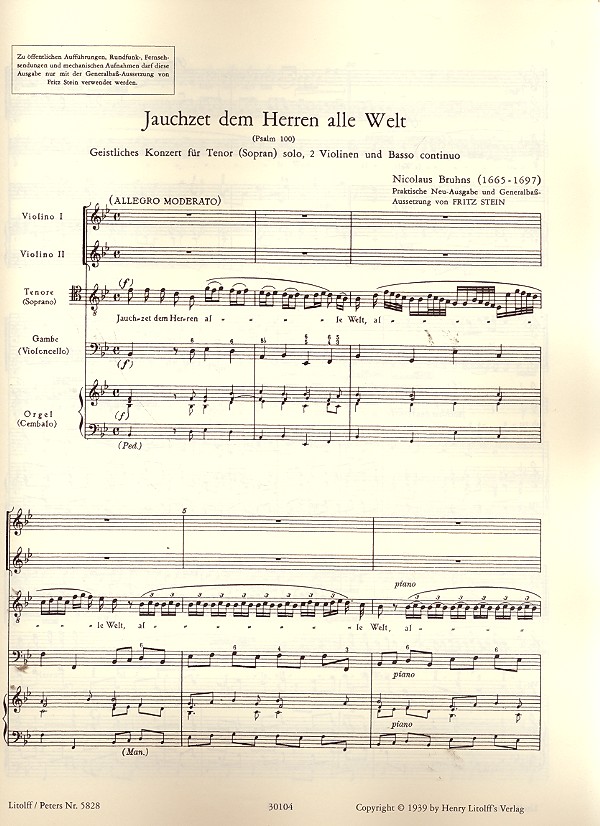 | Untertitel: | für Tenor und Instrumente Partitur und 2 Stimmen |