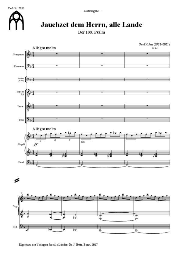 | Untertitel: | für gem Chor, Bläser und Orgel (Pauken ad lib) Partitur |