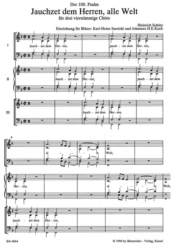 | Untertitel: | Psalm 100 für 3 gem Chöre a cappella, Partitur |