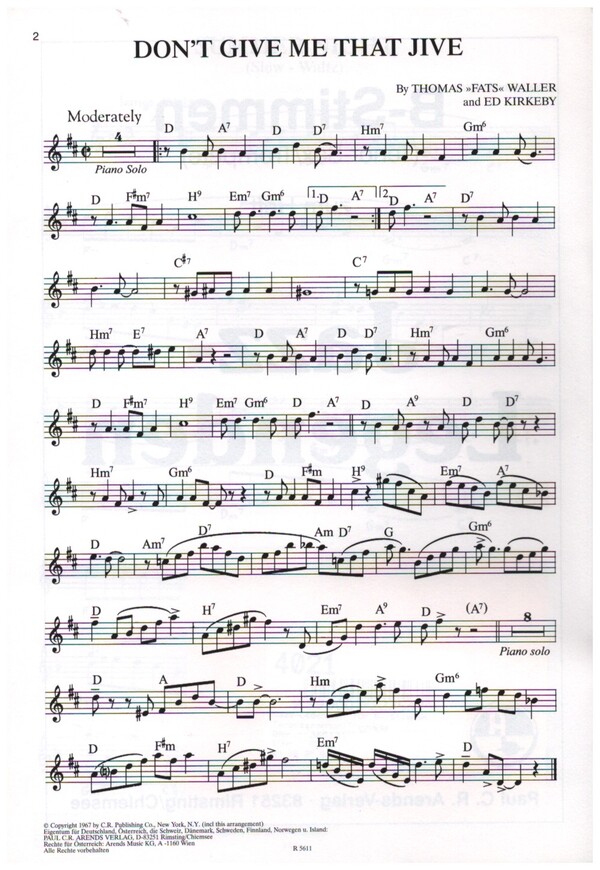 Ergänzer zum Heft Don't give me that Jive Perdido Killer Diller Take Five Black brown and beautiful Rye Bread Take the A Train The Midnight Sun will never set Walkin' Shoes One mint Julep Summer Night