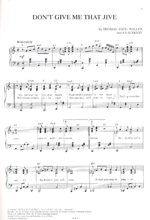 Don't give me that Jive Perdido Killer Diller Take Five Black brown and beautiful Rye Bread Take the A Train The Midnight Sun will never set Walkin' Shoes One mint Julep Summer Night