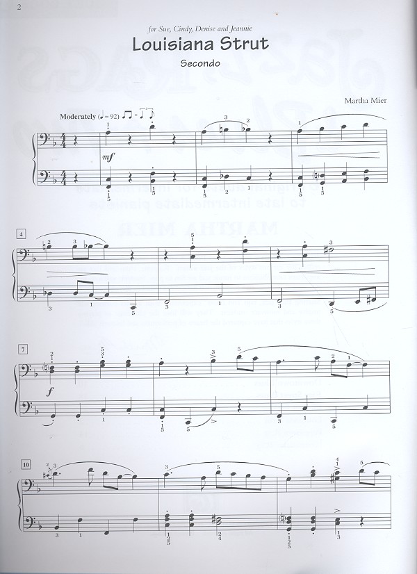 6 original duets for intermediate to late intermediate pianists Downtown Blues Easy Street Blues I'll Wait for You Louisiana Strut Pepperoni Rag Renaissance Rag