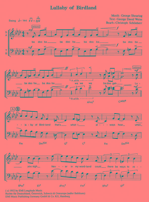 Schönherr, Christoph, ed Lullaby of Birdland On green Dolphin Street Hold on Black Orpheus = Manha de Carnaval