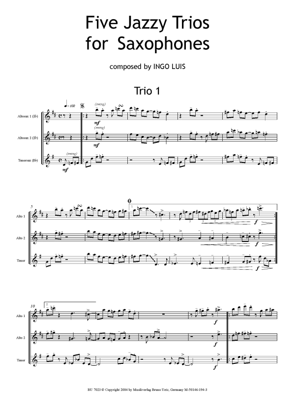 | Untertitel: | für 3 Saxophone (S/A AT) Partitur und Stimmen |