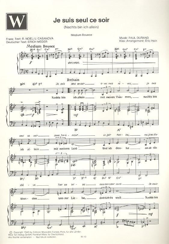 | Untertitel: | für Gesang und Klavier (fr/dt) Nachts bin ich allein |