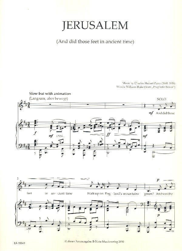 Blake, William, Text Hellmers, Boris, arr. And did those Feet in ancient Time bekannt aus der Last Night of the Proms