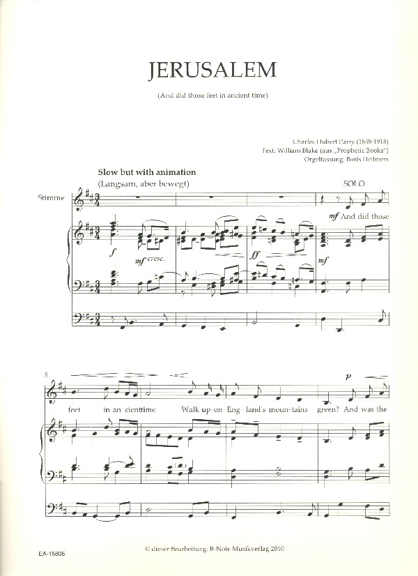 Produktinformationen "Jerusalem für Singstimme (1-stimmigen Chor)"