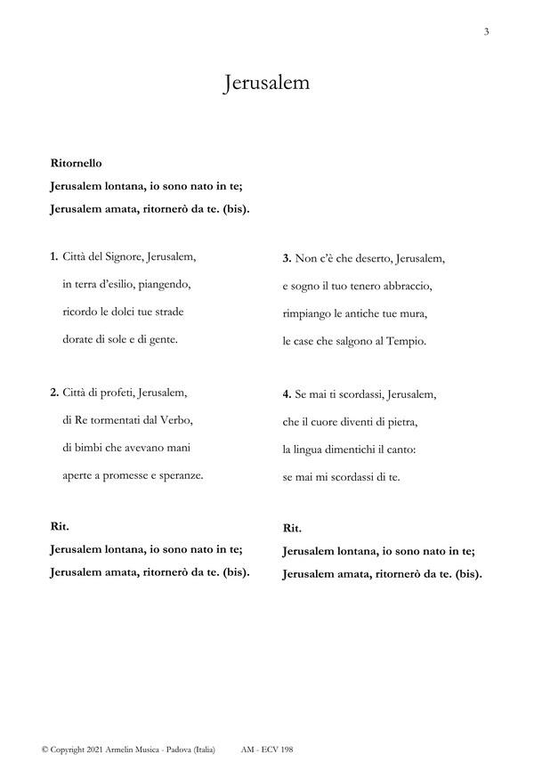Per coro e organo ad libitum. Testi di Antonio Maria Sicari