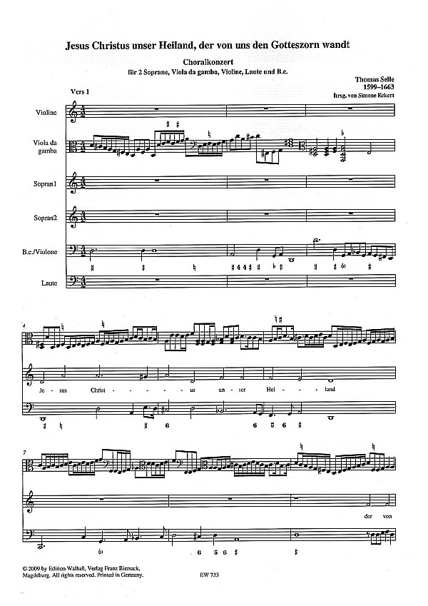 Hamburger Ratsmusik Meisterwerke des Barock Eckert, Simone, ed Choralkonzert aus Deutsche Geistliche Konzerte Teil 3 Nr.13 Jesus Christus unser Heiland der von uns den Gotteszorn wandt
