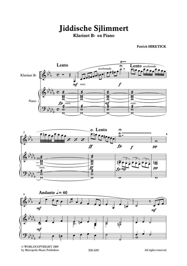 Produktinformationen "Jiddische Sjlimmert for clarinet and piano"