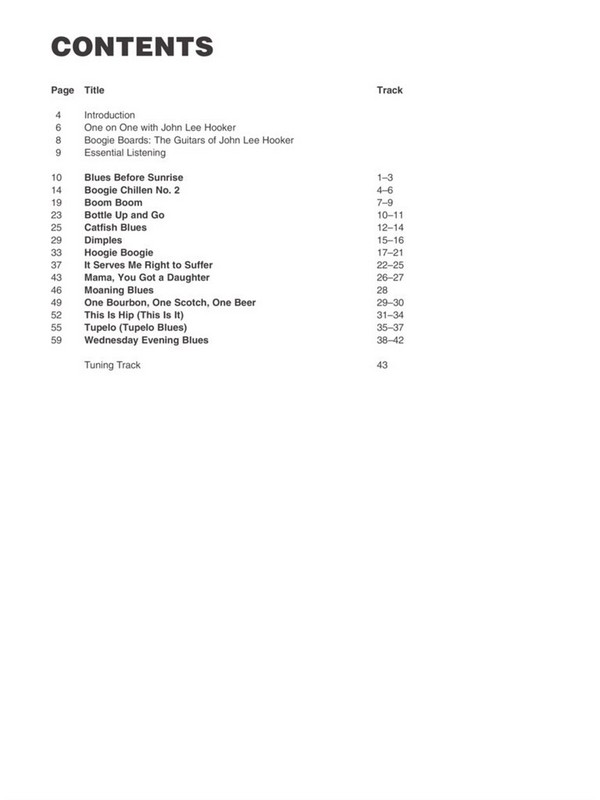 A Step-by-Step Breakdown of his Guitar Styles and Techniques Blues before Sunrise Boogie Chillen no.2 Boom Boom Bottle up and go Dimples Hoogie Boogie It serves me right to suffer Mama You got a Daughter Moaning Blues One Bourbon one Scotch one Beer This is hip (This is it) Tupelo (Tupelo Blues) Wednesday Evening Blues