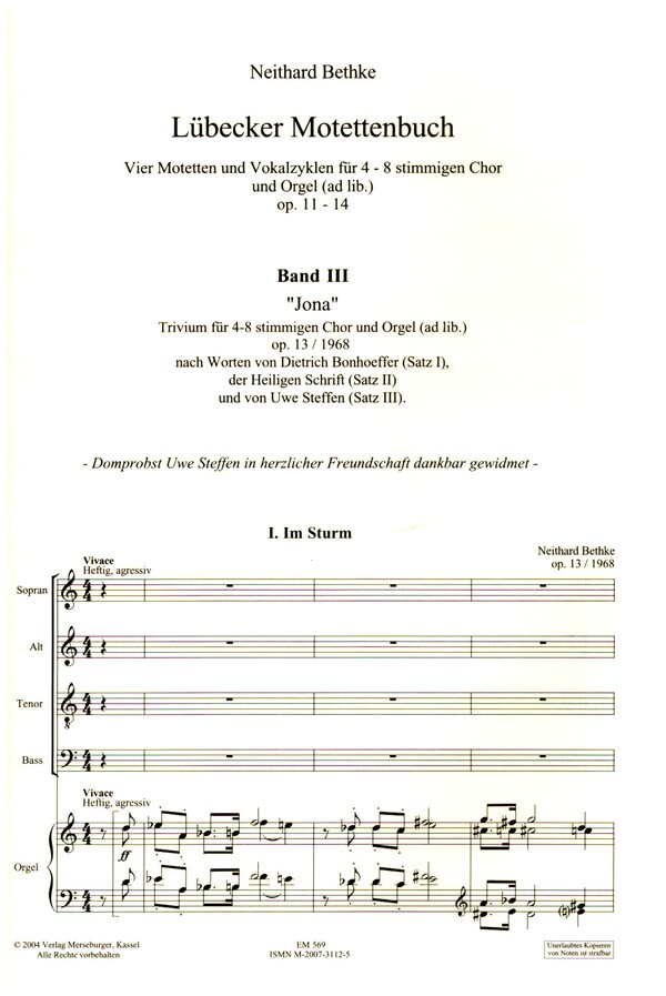 Bonhoeffer, Dietrich, Text (Satz 1) Heilige Schrift (Satz 2) Steffen, Uwe,Text (Satz 3) Lübecker Motettenbuch Band 3