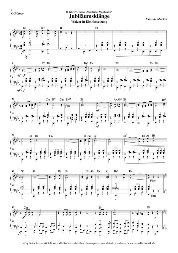 Es entstanden 'Jubiläumsklänge', die nicht nur der Vorgabe mehr als gerecht wurden, sondern in einem facettenreichen Arrangement ganz sicher auch für viel Spielfreude sorgen.