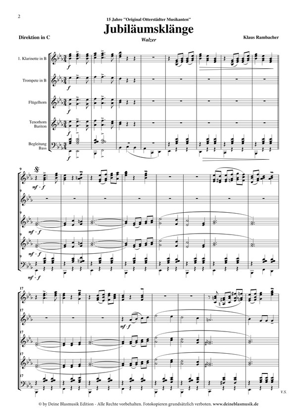Es entstanden 'Jubiläumsklänge', die nicht nur der Vorgabe mehr als gerecht wurden, sondern in einem facettenreichen Arrangement ganz sicher auch für viel Spielfreude sorgen.
