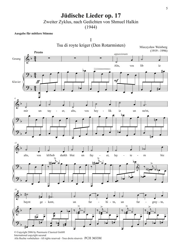 | Untertitel: | für mittlere Stimme und Klavier (jiddisch, YIVO-transl.) |