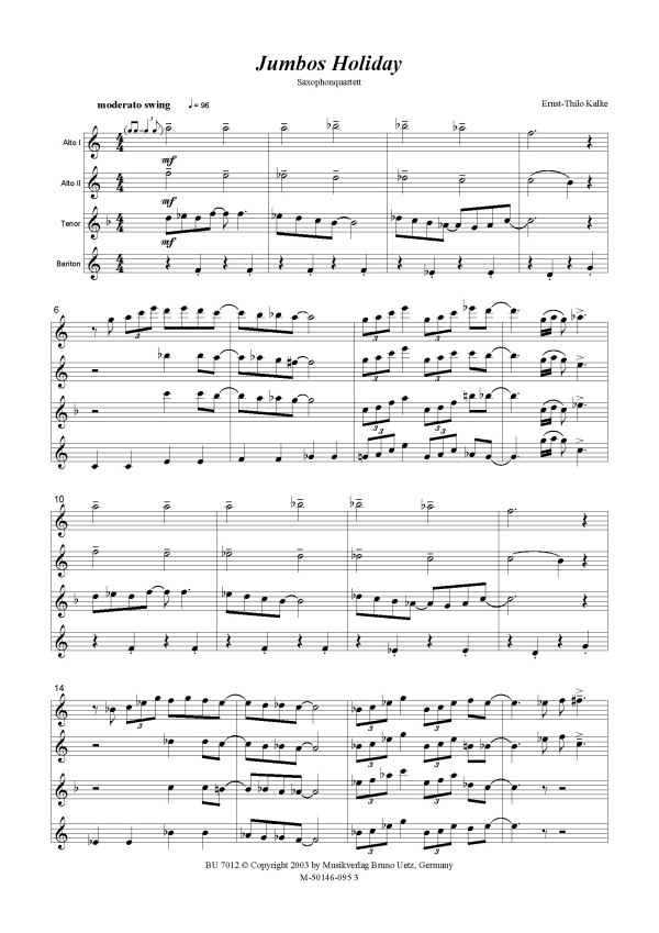Jumbo's Holiday für 4 Saxophone