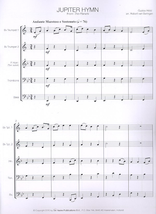 Jupiter Hymn für 2 Trompeten, Horn in F,