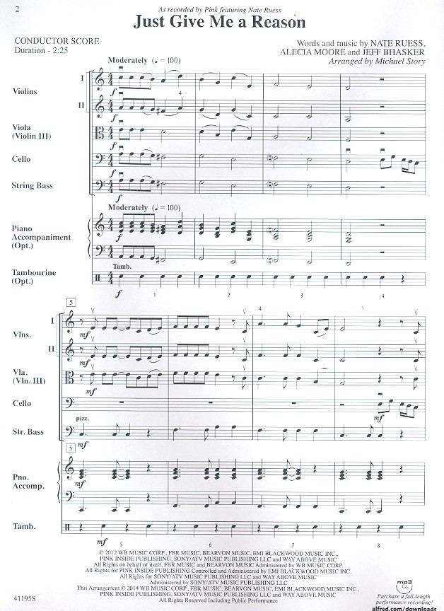 Story, Michael, arr. Pink featuring Nate Ruess, performers