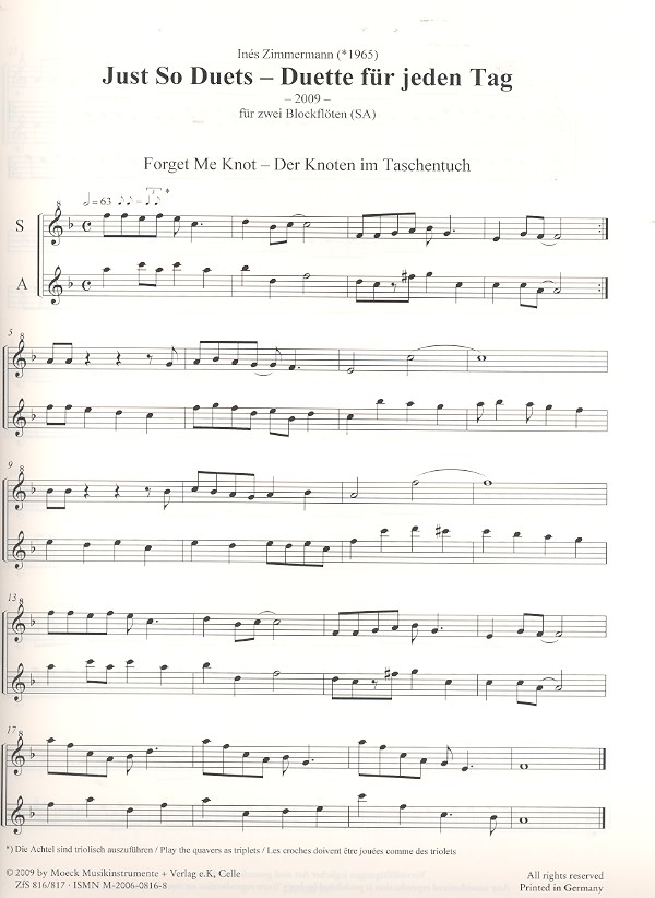 | Untertitel: | für 2 Blockflöten (S/A) 2 Spielpartituren |