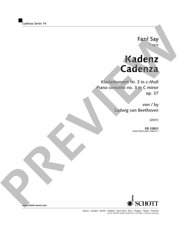 Produktinformationen "Kadenz zum Klavierkonzert c-Moll Nr.3 op.37 von Ludwig van Beethoven"