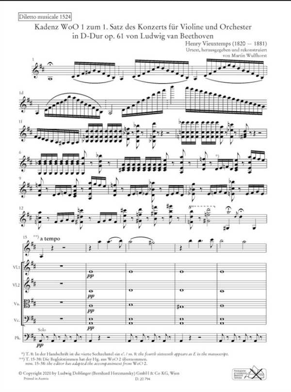 Wulfhorst, Martin, ed Revich, Yury, arr. zum 1. Satz des Konzerts für Violine und Orchester in D-Dur op. 61 von Ludwig van Beethoven