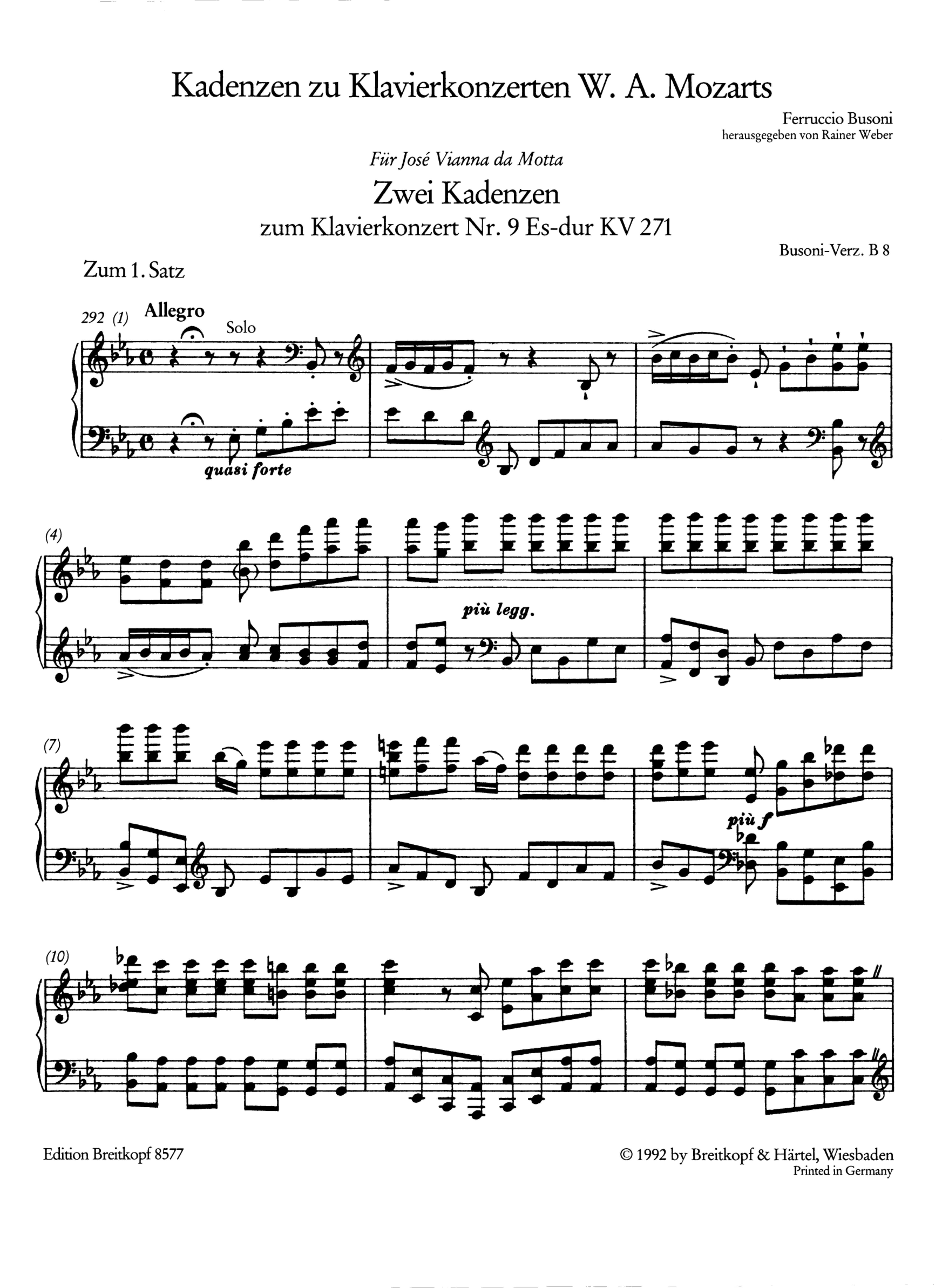 Produktinformationen "Kadenzen zu den Klavierkonzerten Wolfgang Amadeus Mozarts Band 1"