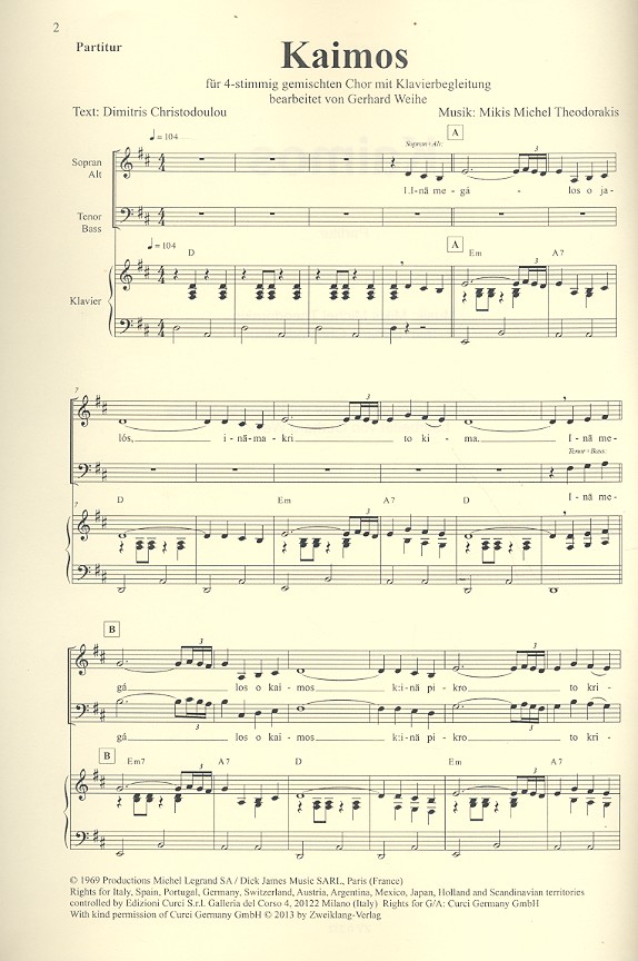 Christodoulou, Dimitris, Text Weihe, Gerhard, arr.