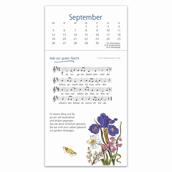 12 Lied-Postkarten zum Heraustrennen mit Notensätzen, Liedtexten und Illustrationen von Maria Sibylla Merian u. a. Die schöne Tradition der Liedpostkarte, die vom Erzgebirge uber Bayern bis nach Österreich populär war, erweckt dieser Kalender zu neuem Leben. Zwölf beliebte Volkslieder sind auf je einer Monatspostkarte im Vintagelook mit Noten, Liedtext und einer nostalgischen Illustration von Blumen und Vögeln gestaltet. Ob Sie die Lieder selbst singen oder als musikalischen Gruß mit der Post verschicken Volkslieder wie »Wenn ich ein Vöglein wär« oder »Im schönsten Wiesengrunde« sorgen auf jeden Fall fur gute Stimmung.