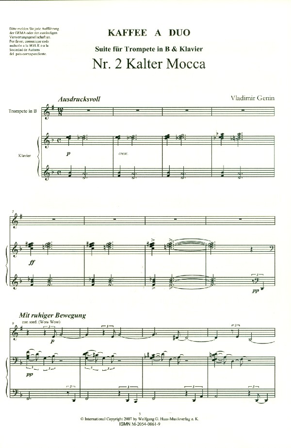 Produktinformationen "Kalter Mocca für Trompete (B/C)"