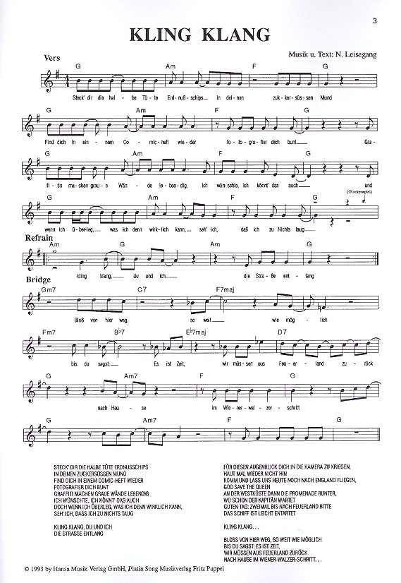 KlingKlang Schwein Flugzeug ohne Räder Trauriges Kind Mama sag mir warum Hofnarr Betrunken So Breit Schone nicht meine Nerven Maggie Amsterdam Singapur Der Löwe Mit dem Regen Primeln und Elefanten