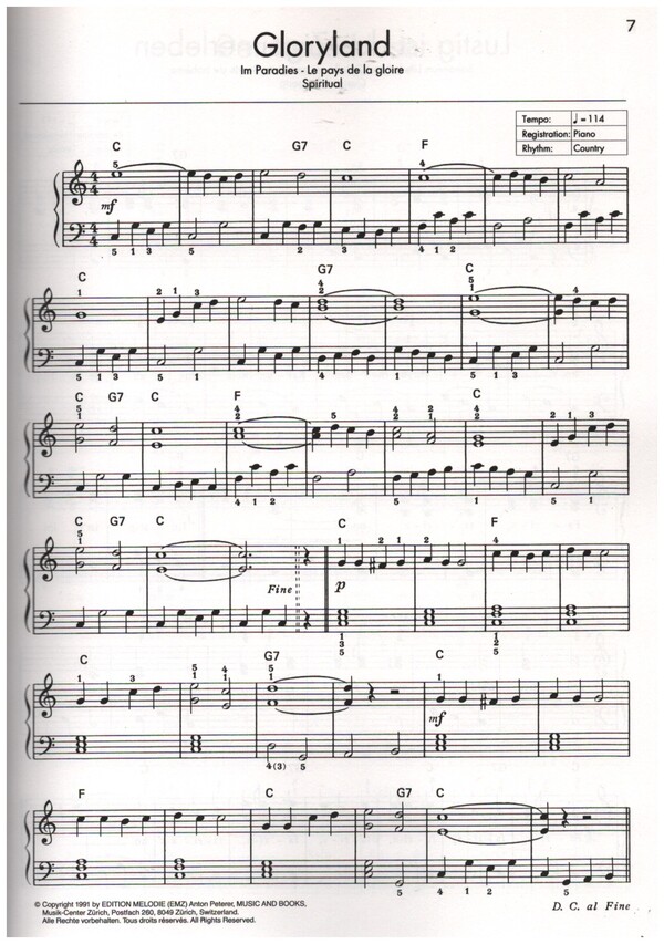 Corby, Mark ed Amazing Grace Amboss Polka American Patrol Andante aus Sinfonie mit dem Paukenschlag (Haydn,J.) Ännchen von Tharau Annen Polka Auf de schwäbsche Eisebahne Auld Lang Syne Auprès de ma blonde Aura Lee Barcarole aus Hoffmann's Erzählungen (Offenbach) Beim Kronenwirt Bela Bimba Billy Boy Brautlied aus Lohengrin (Wagner) Camptown Races Cancan aus Orpheus in der Unterwelt (Offenbach) Carry me back to Old Virginny Chord Charts Cielito lindo Das einsame Glöckchen Da streiten sich die Leut herum Hobellied (Kreutzer) De Hamborger Veermaster Der treue Husar Der Wilddieb Diagrammes Die Schlittschuhläufer (Waldteufel) Down by the Riverside Drunten im Unterland Eine Seefahrt die ist lustig Ein Jäger aus Kurpfalz Ein Prosit Freut euch des Lebens Fröhlicher Landmann (Schumann) Galopp aus Pariser Leben (Offenbach) Galopp aus Leichte Kavallerie (Suppé) Gavotte (Gossec) Gloryland Good Night Ladies Go tell it on the Mountain Grüezi wohl Frau Stirnimaa Guten Abend gut Nacht Happy Birthday Heidschi Bumbeidschi Humoreske (Dvorak) In einem Polenstädtchen I was born about 10000 Years ago Jesus bleibet meine Freude Jingle Bells Joshua fit the Battle of Jericho Kosaken Parade La Cucaracha La Paloma La Sorella Londonderry Air Long long ago Lustig ist das Zigeunerleben Mariechen saß weinend im Garten Mary Ann Menuett in G (Bach, J.S.) Mexican Hat Dance Michael row the boat ashore Thema aus Sinfonie 40 (Mozart, W.A.) Muß i denn Mutterliebe My Bonnie Nächte in Moskau Occhi neri Oh my Darlin' Clementine Oh Susanna Oh when the Saints go marchin'in Old MacDonald had a Farm Polly Wolly Doodle Red River Valley Rolling Home Romanze Santa Lucia Schenkt man sich Rosen in Tirol aus Der Vogelhändler (Zeller) Schiffsjungentanz Scjhlafe mein Prinzchen schlaf ein Schneewalzer Sloop John B. Stoßt an Tango in D (Albeniz) The drunken Sailor The Entertainer (Jopklin) Thema aus Die Moldau (Smetana) The Yellow Rose of Texas This old Man Tief im Bücherland Tiritomba Tom Dooley Auf in den Kampf aus Torero Carmen (Bizet) Ungarischer Tanz 5 (Brahms) Ungarischer Tanz 6 (Brahms) Vermeland Verwehter Glockenschlag Vien sulla barchetta Walzer aus Dichter und Bauer (Suppé) Walzer aus op.39 Nr.15 (brahms) Wie mein Ahnl 20 Jahr' 2 Gitarren Zigeuner Tango diverse Grifftabellen im Anhang