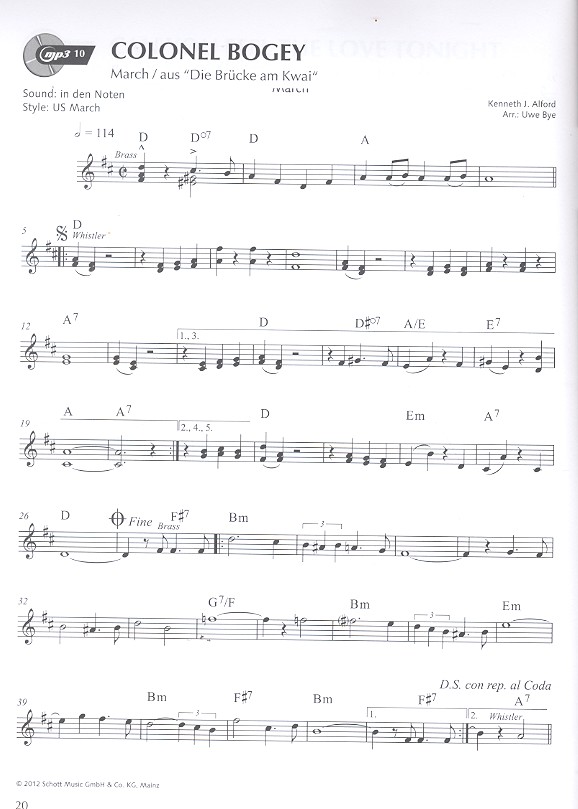 Bye, Uwe, arr. Die 30 beliebtesten Movie-Songs und Film-Hits Anchors Awaigh Winnetou-Melodie Doktor Schiwago My Heart Will Go On It's A Long Way To Tipperary Hit The Road Jack An der schönen blauen Donau Ave Maria Can You Feel The Love Tonight Colonel Bogey Where Do I Begin Por una cabeza Moon River (Everything I Do) I Do It For You When A Man Loves A Woman (I've Had) The Time Of My Life Flashdance... What A Feeling I Don't Want To Miss A Thing onquest Of Paradise He's A Pirate Little Brown Jug James Bond (Main Theme) The Harry Lime Theme Das Boot Everybody Needs Somebody Aus der Sinfonie Nr. 7 Nessun Dorma Once Upon A Time In The West (Theme) Bella's Lullaby Claire de lune