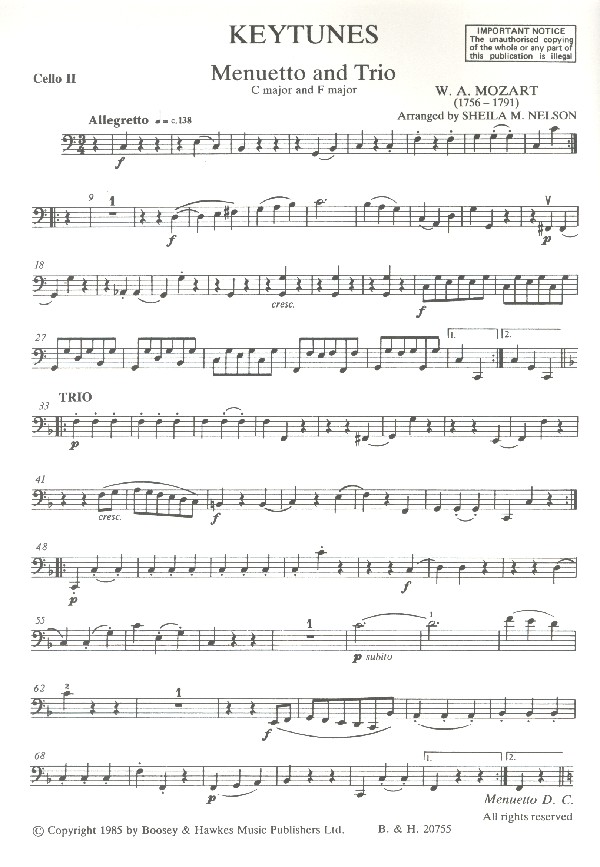 | Untertitel: | für Violoncello (2 Violoncelli) und Klavier oder verschiedene Streiche Spielbuch |