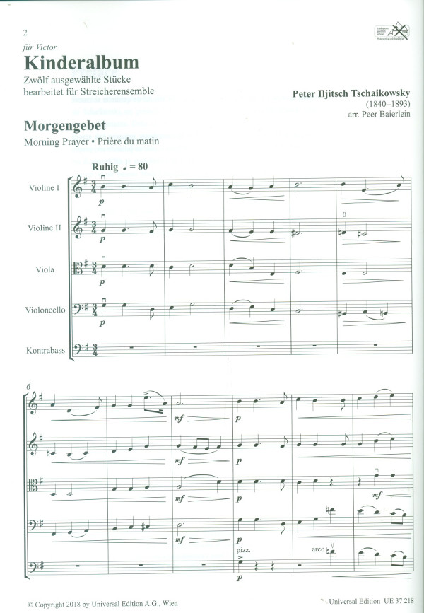 Baierlein, Peer, arr. 12 Stücke Morgengebet Wintermorgen Mama Pferdchenspiel Marsch der Holzsoldaten Die neue Puppe Die Krankheit der Puppe Das Begräbnis der Puppe Walzer Polka Mazurka Russisches Lied