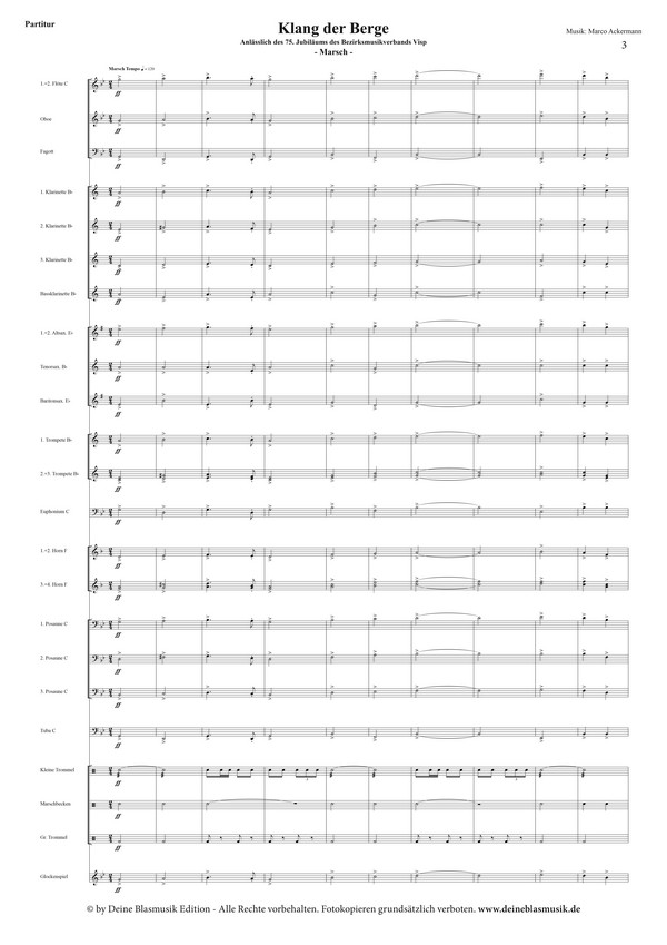 In eindrucksvollen Tönen und Melodielinien spiegelt 'Klang der Berge2 die Schönheit und Vielfalt der Berge und Täler der Region wider. Lassen Sie sich von dieser Musik verzaubern und spüren Sie die Verbundenheit, die sie schafft. Der Marsch ist ein harmonisches Symbol eines facettenreichen Landes, das durch eine gemeinsame Melodie vereint wird.